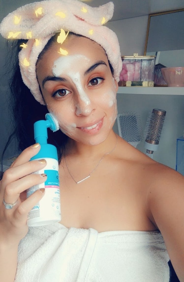 I've always been a huge fan of all Yes To products, because they're super affordable and everything is almost 100 percent natural. The charcoal and tomatoes line is one of my favorites, but this Yes To Cotton oxygenated cleanser just earned itself a permanent spot on my bathroom counter. And is it just me, or did this oddly shaped cleanser make my shelfie (see above) look so much cooler? I don't know, but it definitely stepped up my pre-shower selfie game (see below).