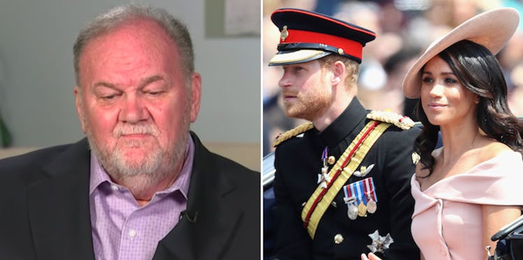 Meghan Markle, Duchess of Sussex's family made a bit of a stir leading up to her wedding in May. First, there was the staged photos incident with Thomas Markle, then there was the odd handwritten note from Markle's half-brother to Prince Harry, and then there was the whole will-he-won't-he scenario when no one was sure if Thomas Markle was going to attend the wedding. He ended up not being able to attend due to reported heart issues. Now he's done his first interview about his daughter, and Thomas Markle's interview about Harry and Meghan's wedding got pretty emotional.