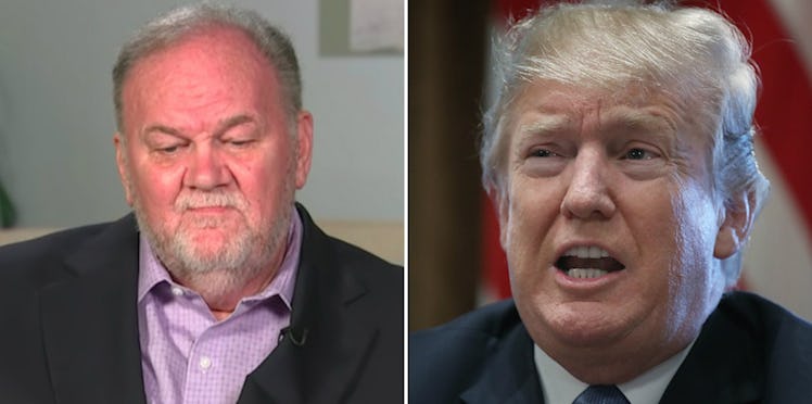 Thomas Markle still hasn't met Queen Elizabeth, Prince Harry, Duke of Sussex, or anyone in the royal family. This is, in part, because he had a heart attack that stopped him from attending Meghan Markle, Duchess of Sussex, and Prince Harry's wedding, but now he feels he's being given the silent treatment by the royals because of his interview with Good Morning Britain. Donald Trump is set to visit the UK next month, and with that comes the possibility of him meeting Queen Elizabeth. Thomas Markle's response to Donald Trump meeting the queen (maybe) shows how angry he is about the current status of his relationship with the royal family. Elite Daily reached out to the palace for confirmation that the Queen will meet with President Trump and for comment on Markle's claims, but they declined to comment.