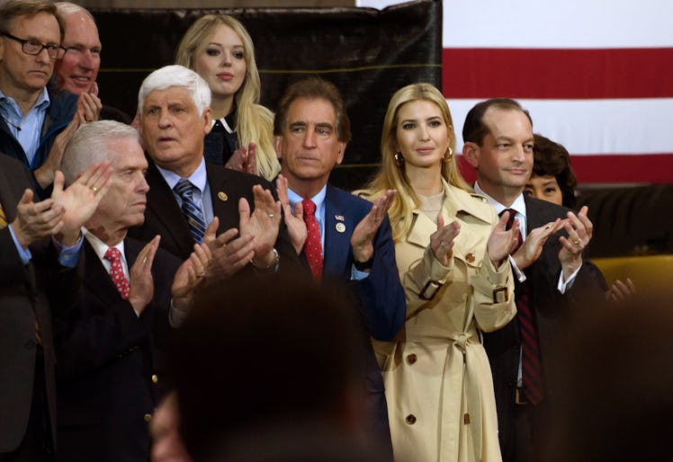 Tiffany, meanwhile, has been largely out of the political spotlight while she attends school. The 24-year-old is a student at Georgetown Law, so while she's also living just blocks from her father's presidential mansion, she's very much in her own world. So the fact that the younger Trump daughter was present on Thursday at all is unusual, and certainly a dynamic change for the usual one-woman show that is Ivanka Trump.