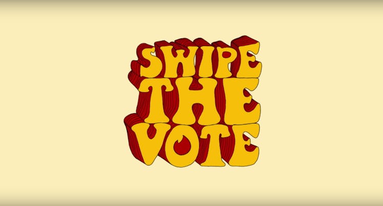 In addition to helping in the creation of this totally nostalgic video, Tinder is also doing its part to encourage its users to vote by presenting them with profile cards that highlight election facts and allow them to register to vote via Rock the Vote.