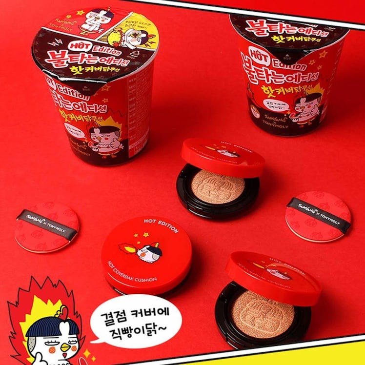Tonymoly's partner in crime for the collection is a Korean company called Samyang. Yes, they're the ones who make Samyang's Buldak Spicy Chicken Ramen (you can get it at most Korean markets), which is arguably one of the best instant variations out there, so you know that the collaboration is going to be legit. As reported by Allure, a Tonymoly official spoke to The Korean Herald of the collaboration and said, "Through this unusual collaboration with Spicy Buldak Chicken Ramen, we are excited to launch special and entertaining products." Special? And entertaining? Uh huh, read on.