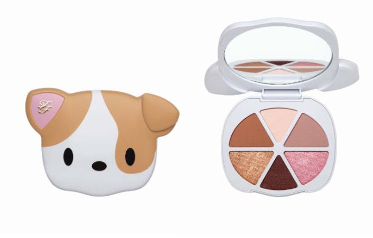 Now here's where things get even more adorable. The palette is shaped like Clover's face and even has a tan patch across his left eye. Inside you'll find six neutral matte and metallic shades, with names all inspired by dogs, like "Bow Wow," "Bad To The Bone," and "Puppy Nose." If you don't have your own real-life puppy to tote in your purse á la Paris Hilton, this one is much easier to keep in your purse, but still just as cute.