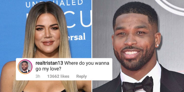 When you're in a relationship and you mess up, the best thing to do is to kiss up to your significant other in hopes that they'll forget what you've done — or, at the very least, be a *little* less angry with you because hey, at least you're trying, right? Well, it looks like Tristan Thompson might be trying to take a page out of that book in hopes of getting on Khloé's good side. And let me tell you, fans are NOT having it, because Tristan Thompson's comment on Khloé Kardashian's Instagram is getting ROASTED by her supporters.