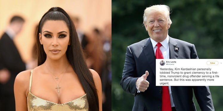 "Yesterday, Trump was meeting with Kim Kardashian about a woman serving a life sentence for a nonviolent drug offense," tweeted CNBC politics reporter Jacon Pramuk. "Today, he's pardoning a man who never served jail time after pleading guilty to campaign finance violations."