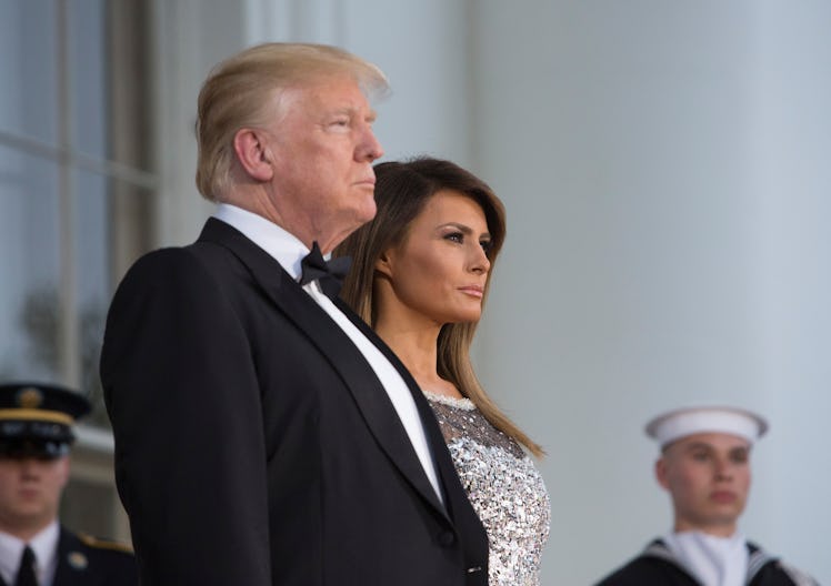 As the president signed an executive order for a faith-based initiative at the event on Thursday, there was one notable absence. Melania Trump was apparently not at the national prayer event, a fact noted on Twitter by CNN's Abby Phillip and The Hill's Jordan Fabian, just as news coverage of her husband's alleged infidelity went into overdrive yet again. Elite Daily reached out to the first lady's communications director for comment on this, but did not hear back at time of publication.