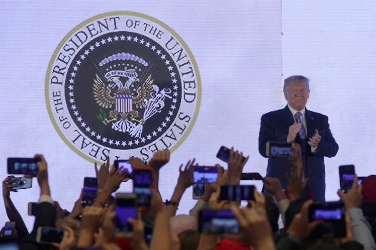Well, this is embarrassing. During a July 23 student summit hosted by conservative nonprofit Turning Point USA, President Donald Trump spent more than an hour praising his own administration and criticizing progressive lawmakers. Nothing about Trump's speech at Turning Point USA's event was unusual; in fact, it was rather similar to those he has delivered during his campaign rallies. What was unusual, however, was the presidential seal projected onto the screen behind the president when he walked on stage. Instead of sticking to the official seal of the president of the United States, Trump's speech featured a fake presidential seal that appeared to reference Russia, not to mention mock Trump himself.