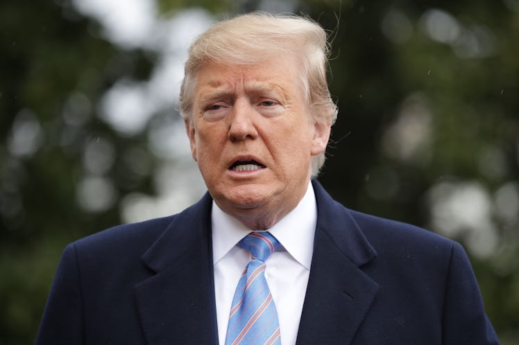 On Thursday, April 11 at 7:20 a.m. ET, Trump tweeted out a screenshot of a graphic from Lou Dobb Tonight on Fox Business Network from the previous night's episode, which apparently showed "Trump's soaring approval," with a 55 percent approval rating overall and a 58 percent approval rating when it comes to the economy. Except there's one little, — OK, pretty big, problem — those numbers are only half right. According to NBC News, the numbers were taken from the Georgetown Institute of Politics and Public Service Battleground Poll, and while they did have Trump's approval rating regarding the economy right, at 58 percent, that 55 percent is actually his unfavorable rating, according to a tweet sent out by Mo Elleithee, director at Georgetown Institute of Politics.