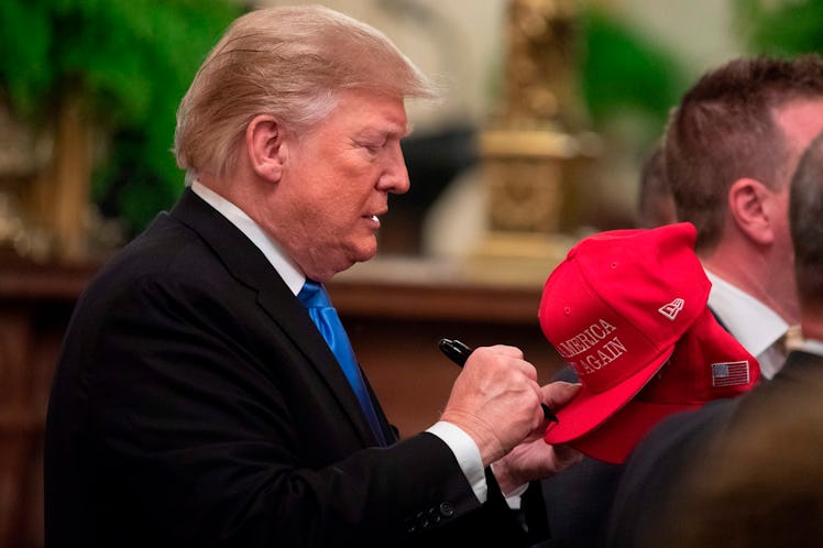 The president posted the video on Twitter with the caption, "TOUGH GUYS FOR TRUMP!" But as his fellow Twitter users quickly pointed out, Trump seemed to miss the punchline of the joke, which was that David wears the MAGA hat to get out of awkward or unwanted interactions with people.