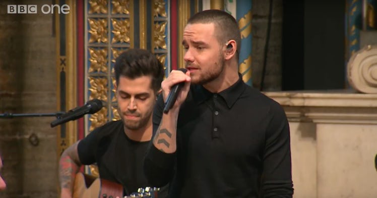 Liam Payne performed live in front of the Queen of England, Meghan Markle, and Prince Harry at Commonwealth Day at Westminster Cathedral on March 12 and it was nothing short of epic. The former One Directioner sat on a bar stool in a black button down and unleashed the most beautiful acoustic cover of John Mayer's "Waiting On The World To Change." It was a show-stopping rendition, and the tweets about Liam Payne's performance show his fans seriously loved it.