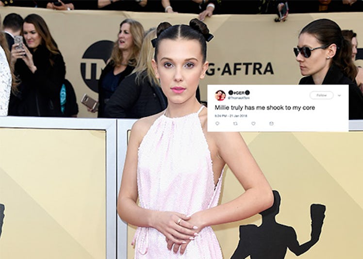 This Twitter user (who is clearly obsessed with the Upside Down) applauds the sheer range of Millie Bobby Brown's look. She can go to the SAG Awards and then celebrate with a burger at In-N-Out after.