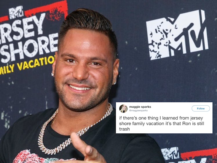 Did you hear that? That's the sound America collectively saying, "Raaaahn, staaaahp" after Thursday's episode of Jersey Shore Family Vacation. After questionably cheating on his girlfriend, Ronnie continued to dig himself deeper into a hole by pretty much denying that anything happened, both to his then-pregnant girlfriend Jen Harley and to his roommates. Jen was willing to put the past behind them, but Ronnie hasn't been so lucky with viewers, many of whom spent the night dragging him on Twitter for his behavior. These tweets about Ronnie on Jersey Shore are so brutal that I wouldn't be surprised if he's ditching his G.T.L. routine and spending the day in bed. Or, knowing Ron, he's going hard on the Ron Ron Juice to forget all about his haters.