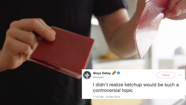 I've been eating ketchup on my food for as long as I can remember. Even though it might drip off my burger and wind up on my clothes from time to time, I've never really been too bothered by a ketchup stain. It turns out that I might not have to worry about a ketchup spill ever again because one company has created "sliced ketchup." Yes, you read that right, and these tweets about sliced ketchup might leave you confused about how to feel.