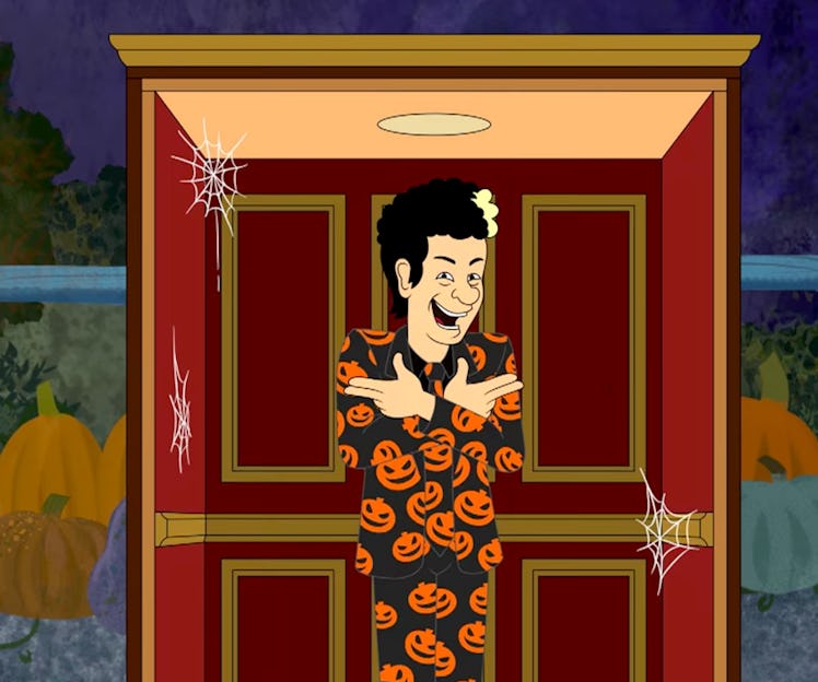 Though the Oct. 28 episode opened with a live-action reunion of Hanks’ Pumpkins and Mikey Day and Bobby Moynihan’s skeletons, the show quickly morphed into a cartoon. During the sketch, a little boy and his sister made their way to a pumpkin patch where an elevator rose from the ground and opened up to reveal David S. Pumpkins himself, who was wearing his ever-so-fashionable black suit donned with orange pumpkins. There was singing and a very unclear backstory about "the Halloween Santa," and all appeared hunky-dory.