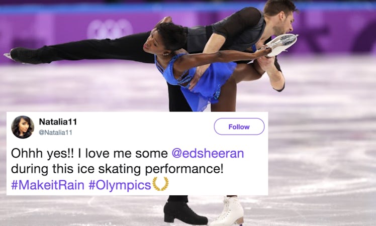 Until the 2018 Winter Olympics in PyeongChang, South Korea, you may have noticed that a lot of ice skaters performed to classical music. Which, don't get me wrong, is still straight up majestic-as-heck, but I personally feel that watching the figure skaters' performances in this year's games — dancing to so many of my favorite tunes — has been beyond amazing. And, based on the tweets about the French Olympic pair skating to Ed Sheeran, I think everyone is pretty happy about it.