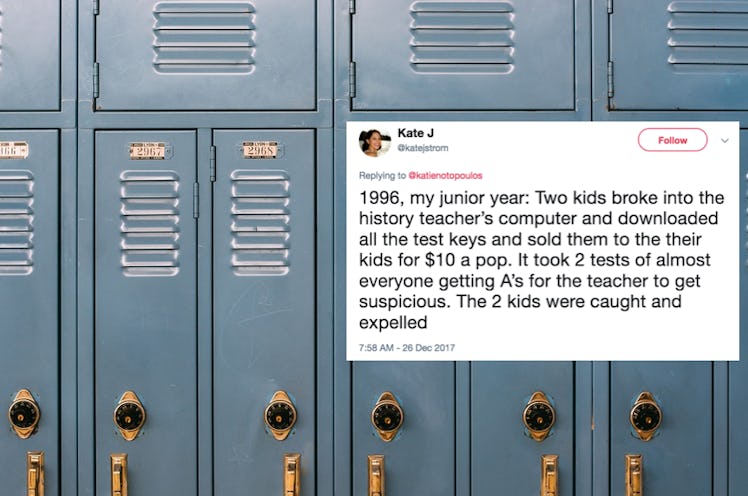 All it took was one simple question from Katie Notopoulos (who is a tech writer for BuzzfeedNews, according to her Twitter bio) on Sunday night for Twitter to seemingly turn into a collection of all the crazy that has ever happened in every high school... like, ever. Notopoulos posted the question, "What was 'the incident' in your high school?" By Tuesday, Dec. 26, her tweet had over 3,080 replies. From the looks of the responses, high school is way more than some embarrassing acne and braces.
