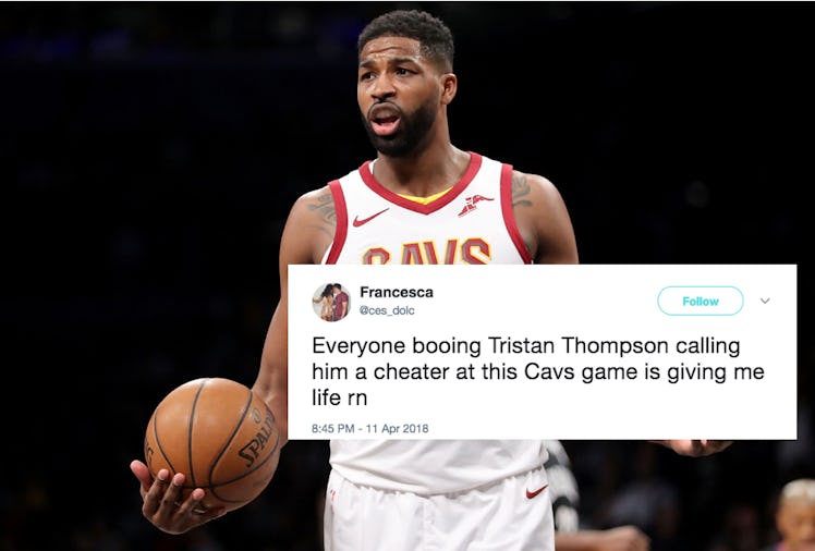 For the past day, everyone has been talking about Tristan Thompson's cheating allegations, especially on social media. There's been a nonstop influx of savage tweets, memes and GIFs related to the rumors, and just when I thought I'd seen it all, social media has proven me wrong. The tweets about Tristan Thompson's first appearance since the cheating rumors have me so weak, and I just can't, you guys.