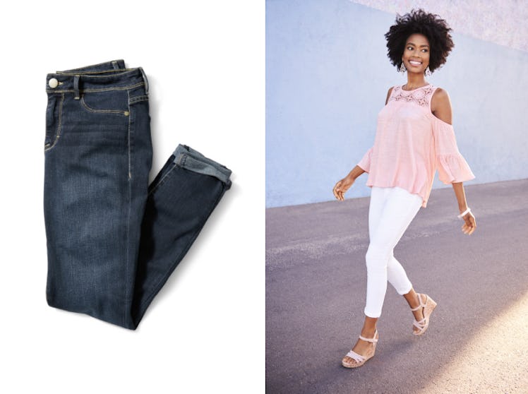 Enter: Time and Tru's uber affordable high-rise skinny jeans ($17, walmart.com), which you can buy at Walmart for under $20 and are made from recycled plastic water bottles. Each pair is made from approximately eight to 11 water bottles, all of which have been broken down into a fiber and blended with cotton, meaning the texture of the pants is super comfy and not at all abrasive.