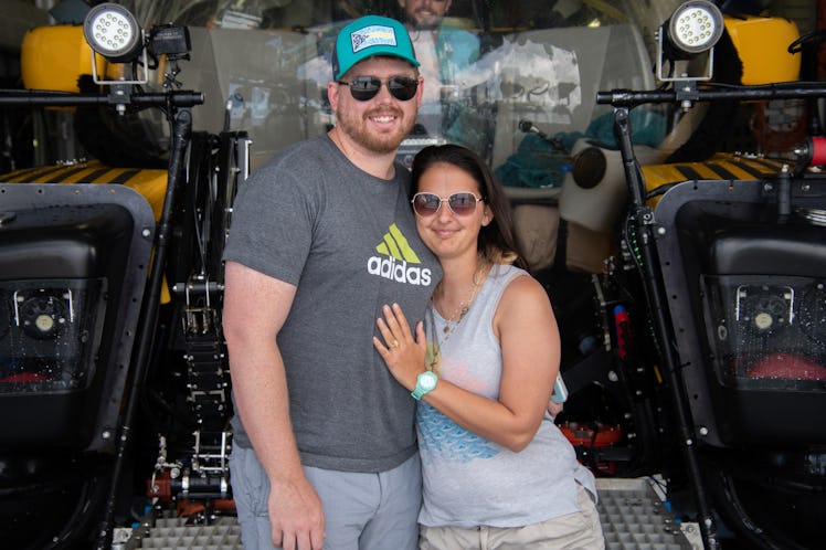 And when I say "beneath sea level," I don't mean they just took a dip into the deep end of the pool. No, instead, I mean that the couple actually got on a submarine and traveled 1,350 feet into the depths of the ocean. That depth alone makes it one of the deepest marriage proposals to date (also, like, who knew that was a thing people were keeping track of?). Oh man, my ears are popping at just the thought of it. So...yeah, this proposal was a little more adventurous than that of, say, your friends who got engaged during a sunset walk on the beach last weekend. But when you hear more about who they are as a couple you realize that it was more than just adventurous; it was also a perfectly fitting tribute to their passions and careers.