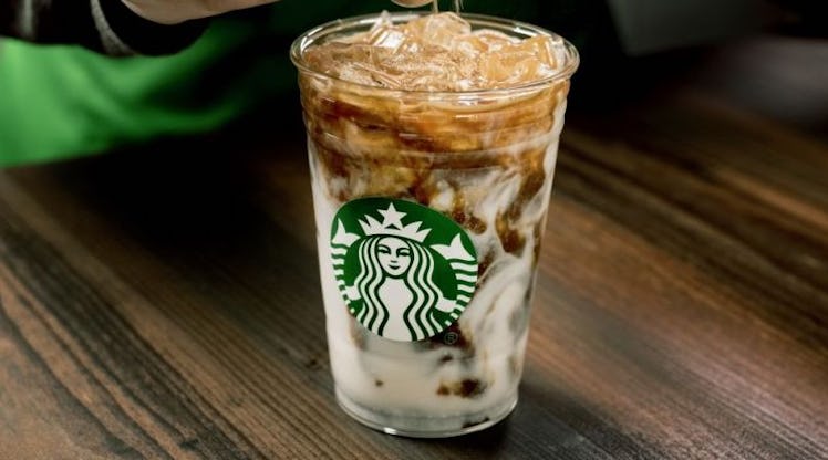 The Iced Blonde might not have mocha drizzle or almondmilk, but it can be a refreshing start to the day. It's made with Blonde Espresso shots that topped with water to create a light layer of crema. The refreshing sip is served over ice to keep things cool.