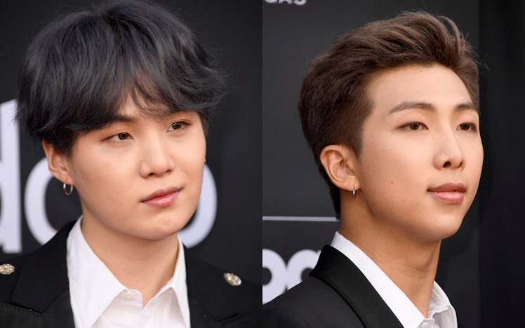 There is no such thing as a bad BTS song. It pains me to even write the words "bad" and "BTS" next to each other because everything the guys touch basically turns to gold. Actually, more like platinum. It's been two months since BTS released their album Map of the Soul Persona, but that doesn't mean the guys have stopped rolling out new music (seriously, do these guys ever rest?). In fact, for the past few weeks, the group has released sub-unit songs as part of their BTS World soundtrack. Jimin, Jungkook, and Jin released "Dream Glow" with Charli XCX on June 7, then V and J-Hope released "A Brand New Day" with Zara Larsson on June 14. Now, RM and Suga have released "All Night" with Juice WRLD. What do Suga and RM's "All Night" lyrics mean? Let's break it down.