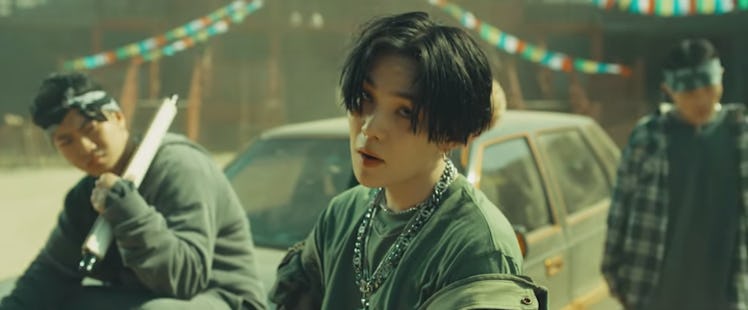 For over a week, Big Hit Entertainment teased new music from a certain someone, which had ARMYs glued to Twitter to see what it was all about. On Friday, May 22, it was Suga who dropped a huge surprise for fans: his D-2 mixtape. He dropped it along with a music video for his new single. As the day went on, more details about Suga's latest work began to spill out on social media. As always, fans want to know what Suga's "Daechwita" lyrics mean in English. Let's just say Agust D did not hold back on the track — and it has ARMYs shook.