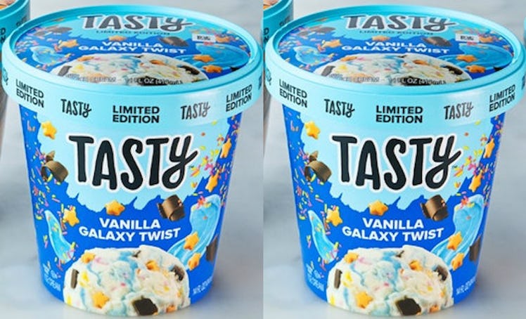 Before I get to exactly when you can expect from these flavors, I'll let you know that Vanilla Galaxy Twist and the three other Tasty flavors, which are made with Nestlé Dreyer’s Ice Cream, are available across the United States as of February 2019 until supplies last. The flavors are sold in 14-ounce containers for around $4.99, per Tasty.