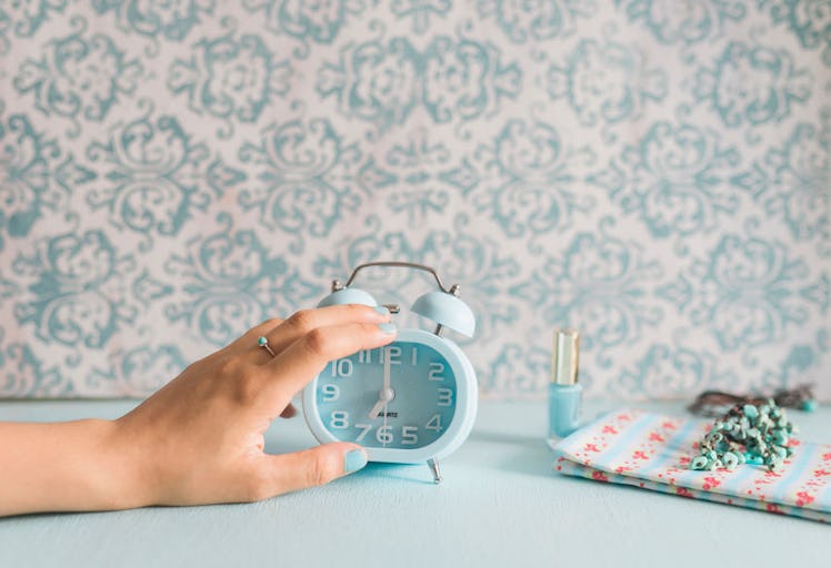 In fact, if your body doesn't already naturally wake up on its own before your alarm, Dr. Smarr recommends literally training your body to do exactly that — which, yes, sounds like a lot of work, and will probably entail some major habit-breaking, but it's definitely not impossible. "The first way to try to wake up without an alarm clock successfully is to go to bed earlier, remembering that you're giving up night hours to invest in higher-quality, higher-performance day hours the next day," Smarr tells Elite Daily. "Stop using bright lights, especially devices, at least an hour before your bedtime. The light fools your brain's clocks into thinking it's daytime, and so reduces your natural sleep pressure, keeping you up later than your body intended."