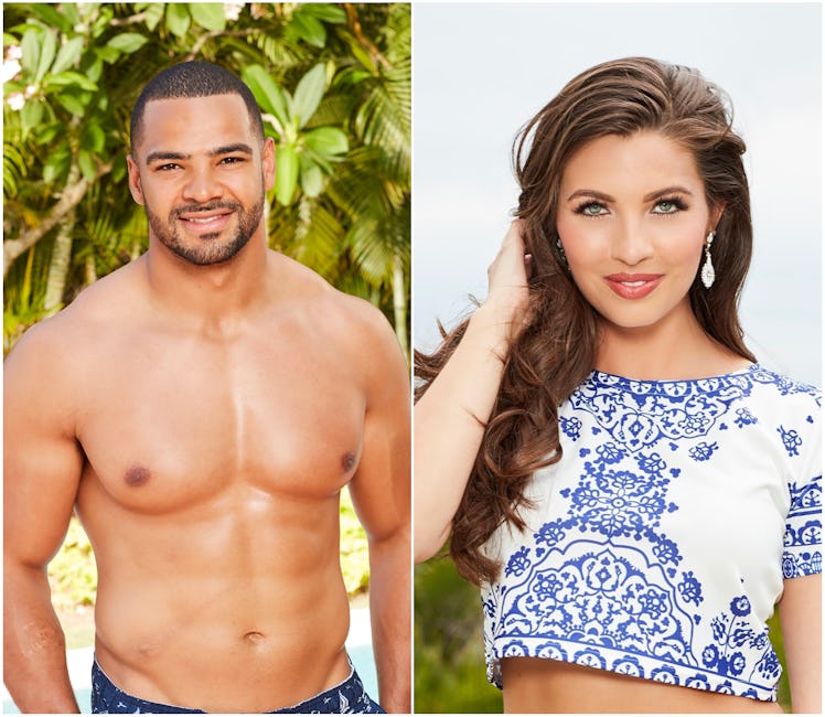 Chances are you're still too preoccupied with what's going on between Hannah Brown and Tyler Cameron to research this history, but thankfully, there isn't too much to catch up on. Although pro football player Clay appearing on Paradise after a smooth stint on Becca Kufrin's Bachelorette season last year seemed like an obvious choice, he ended up not going to the beach. However, Angela, a Night One castoff from Nick Viall's Bachelor season, did join the Season 5 cast, and briefly dated Eric Bigger before he ditched her for another Paradise woman. Angela didn't really click with anyone else afterward, but Paradise co-star Chris Randone played Cupid off-screen and set up Angela and Clay.