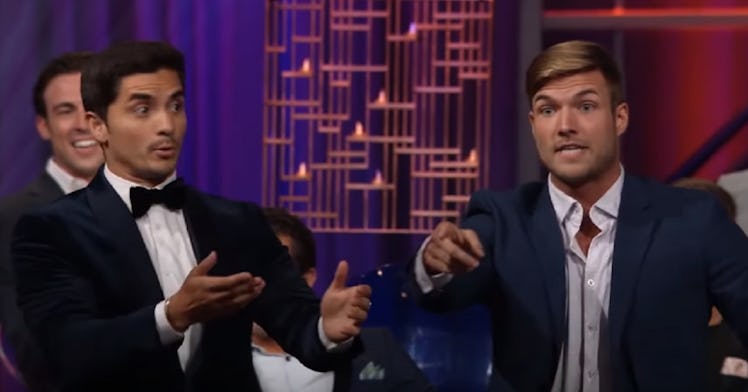 Speaking up around the 4:35 mark, Christian pulled a classic early castoff move by inserting himself into Bachelorette drama he wasn't even around to witness. The issue at hand was really between Jordan and future Bachelor Colton Underwood, whose debate about Colton's pre-show relationship with Tia Booth segued into talk about Jordan's personality. Christian seemingly took Colton's side by questioning the validity of Jordan's career. Both men left their seats to talk in each other's faces, with Jordan saying the bit was Christian's attempt for camera time. Christian also called fellow Night One contestant Kamil Nicalek "the real model," and this is when the episode got really odd.
