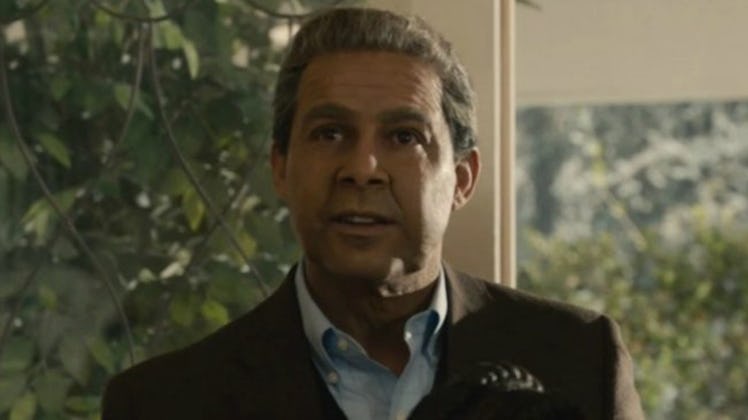 The This is Us Season 3 finale ended with a look at the future as the Pearson family seemingly gathered around an elderly Rebecca's hospice bed. Though specific details weren't revealed, it mood of the scene makes it seem like the matriarch is sick and living her final days. Her whole family is there, except for one key member: her husband Miguel.