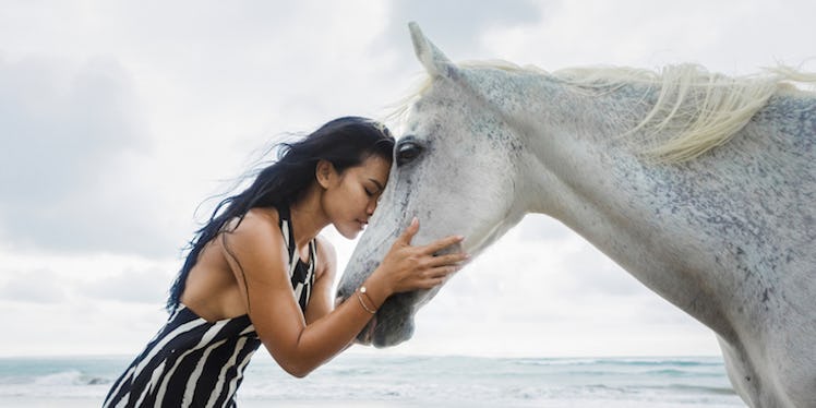 As a yoga instructor, I was initially confused AF when the traditional practice of yoga began taking new...furry forms. Animals are increasingly being signed up for vinyasa classes alongside zen-seeking humans, and it's kind of controversial, to say the least. Goat yoga (goga) turned into doga (yep, you guessed it, yoga with puppers), and then I stumbled upon an article on equestrian yoga. But like, what is horse yoga? I can wrap my head around the smaller animals, but this one seemed like it was going a little too far — you feel me?