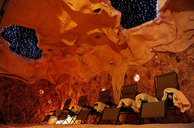 Even if you're the most adventurous seeker of new beauty trends, the latest wellness opportunity will probably blow your mind. Salt therapy, otherwise known as halotherapy, is all about healing the body, simply by way of breathing incredibly salty air. But for people who are wondering what salt therapy is and know nothing about it, you might be surprised by this one essential aspect of the experience: You are literally in the heart of a massive salt cavern, straight out of one of those mummy movies you watched growing up. You're surrounded by crystallized salt, and the only thing you have to do is sit there and enjoy the view (and the smell, I guess).