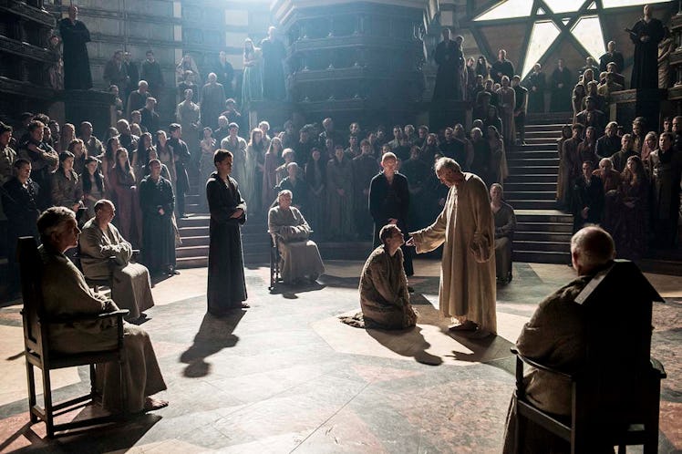 In Game of Thrones Season 5, the Faith of the Seven plays a pretty big role in the plot when the High Sparrow starts taking more and more control over King's Landing. He leads a group of sparrows in a group called The Faith Militant, and they make Cersei do her infamous walk of shame as atonement for her sins. Martin has said that he based The Faith Militant on the way the Catholic church acted during the Middle Ages. He was especially interested in how the leaders in the church became more focused on power than faith, which is exactly what happens to the High Sparrow in Season 5. Martin told Entertainment Weekly: