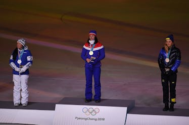 Let's start with the ladies (because, duh). On Sunday, Feb. 25 (PyeongChang time), Norway’s Marit Bjoergen won the gold in the 30-kilometer mass start cross-country ski race. Bjoergen placed alongside Krista Parmakoski of Finland, who took home the silver medal, and Stina Nilsson of Sweden, who took home the bronze. Since their events were so last minute, they didn't get a personal medal event... so, they were awarded at the Olympics closing ceremony. Again, what a damn honor, am I right?