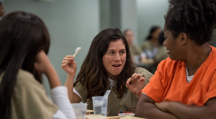 Lorna Morello has had some of the most drastic ups and downs during her time in prison, and the recently released Season 6 of Orange Is the New Black is no exception for the delightful but daffy character. Last season, Morello discovered that she was pregnant, and her storyline this season is all about that pregnancy. But the final episode of Season 6 probably leaves viewers with one big question: What will happen with Lorna's baby in OITNB Season 7? Let's talk about Morello's situation in the new season and what it might be setting up for next year.