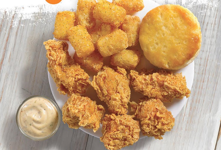 There are a couple of ways to order this tasty limited time offering. Depending on how hungry you are, you can choose between the seven-piece or 10-piece combo. If you're really hungry, I would recommend going for the 10-piece — not only does it come with the wings, tots, and ranch, but you also get a biscuit, a regular side, and a drink. This deal might just be enough to get you to stray from your meal-prepped chicken and veggies for a night.