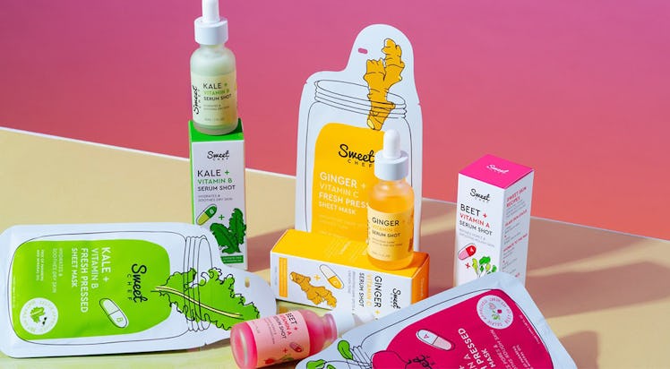 So, what exactly will the line include? There will be three varieties of Serum Shots, including pink smoothing serum Beet + Vitamin A, mint-toned hydrator Kale + Vitamin B, and golden, brightening Ginger + Vitamin C, all available for $20 each. The brand will also have Fresh Pressed Sheet Masks available for $4 in each of the three varieties, so you can stick to your favorite and really immerse your skin into the veggie-vitamin combo of your choosing, or mix and match to reap the benefits of multiple ingredient combinations. Per Allure, the decision to create both masks and serums stemmed from the Korean trend of "double seruming," which allows a user to layer multiple serums so as to target multiple skin concerns at once. "You don't have to do a 10-step routine, but you can still cocktail serums according to your needs," Glow Recipe co-founder, Christine Chang, tells Allure. "We're bringing that into daily skin care, but in a more accessible way that will make a lot of sense to people because everyone has their skin-care wardrobe these days."