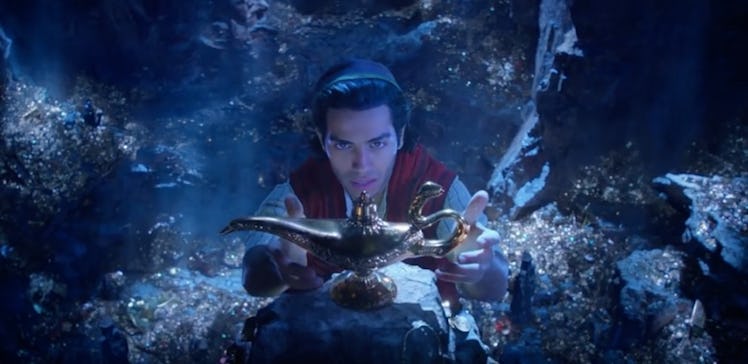 Disney revealed the first teaser for its upcoming Aladdin movie on Oct. 11 and I don't know about you other '90s kids out there, but I got nostalgia-fueled chills. The familiar music. That sweeping desert shot. Iago. The magic lamp. It just made it all so real. The studio has a slew of live-action updates of animated favorites in the works and Aladdin is the next one up for release. So, when does Aladdin premiere? The movie is set to show you the world sooner than you may think.