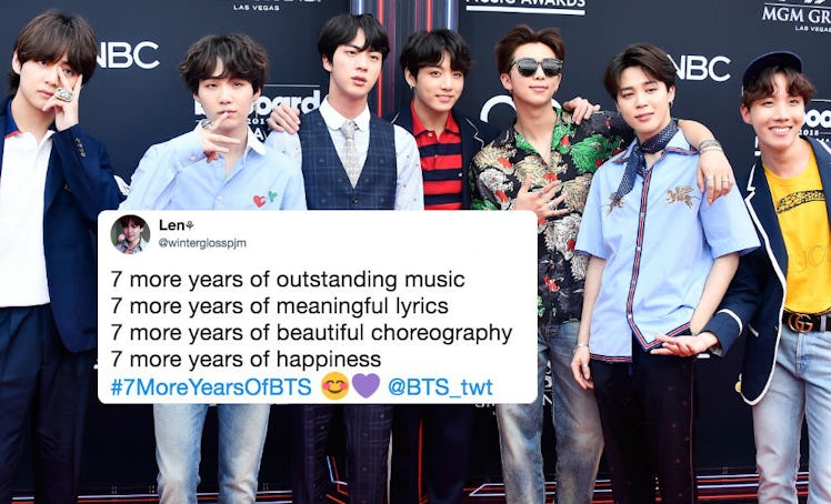 Of course, the ARMY (the fandom name for BTS) had a field day with the news, and excitedly took to Twitter using the hashtag "7MoreYearsOfBTS," which scaled to Twitter's Worldwide trends list: