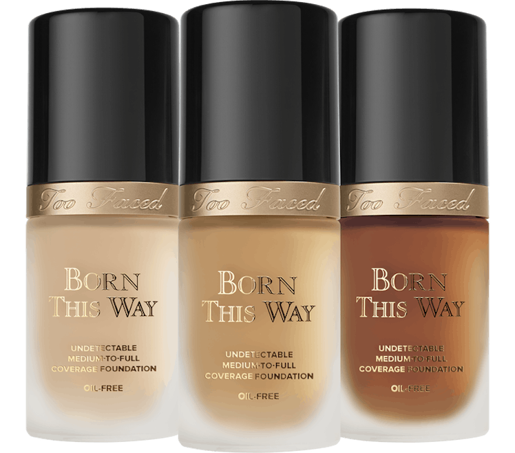 I can't show you the foundation that I'm using—well, technically I can...It's Too Faced Born This Way. But it's my new shade — that I created."