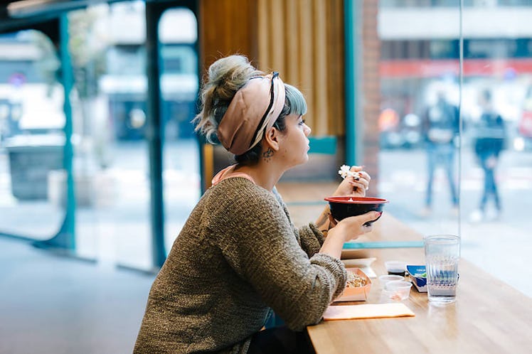 There's a lot to be said for doing some things in life alone. At first, the idea of grocery shopping, going to a dentist appointment, or hanging out in a coffee shop without your best friend might sound totally cringe-worthy. But, having these experiences all by yourself can actually be really rewarding. Picking out your own bag of chips or handling complicated documents at the receptionist's desk makes you feel more confident, and teaches you a ton about the "real world." When you feel comfortable eating alone in a restaurant for the first time, in particular, you learn a few things about yourself and your surroundings that you couldn't otherwise.