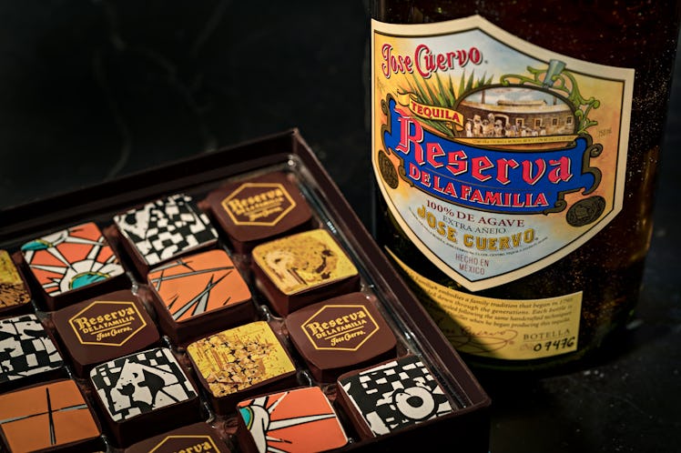 Circling back to the "beautiful packaging," Lieberman also incorporated that aspect into this limited-edition treat. Traditionally, bottles of Reserva de la Familia are released annually in hand-painted boxes featuring the artwork of Mexican artists. With that, the dark chocolate shell paintings you'll see in your box of chocolates are a nod to past artists in the Reserva de la Familia collection, so you should take a moment to appreciate the works of Ricardo Pinto, Sergio Hernandez and Pablo Vargas Lugo found atop your chocolate before you bite into the delectable treat.