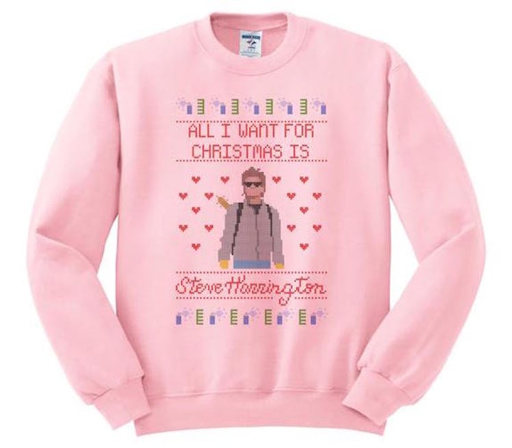 Like, are you kidding me?! How perfect is this? Could you imagine rolling up to your pal's ugly sweater party rocking a sweater with Steve Harrington on it? All of your Stranger Things-loving friends would lose it. If you agree, you can buy it on TeesAndTankYou's site for $34.00. You can also get it in white and grey (I'm sold on the pink, though).