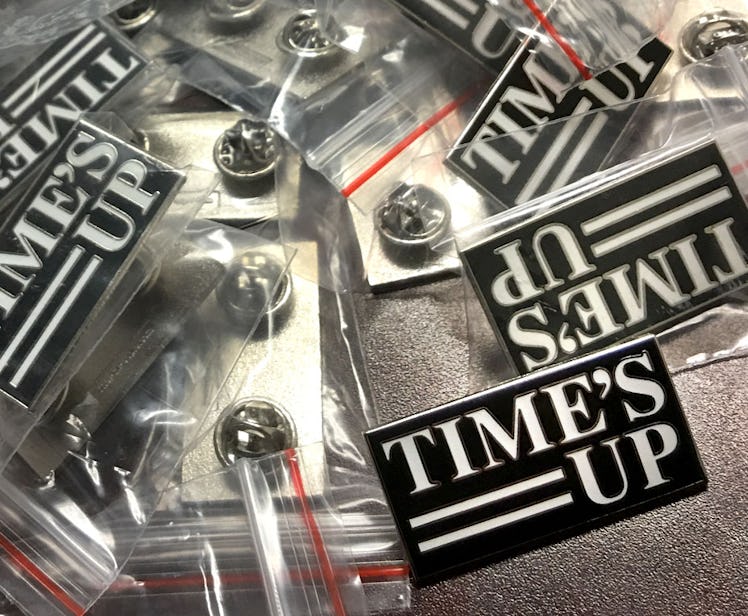 It’s official: the most talked about accessory on the red carpet this year won’t be a custom Edie Parker clutch or a billion dollar Cartier necklace. Rather, it will be the Golden Globes Time’s Up pin, which publicly condemns sexual harassment. Where can you buy the Time’s Up pin for yourself, you ask? Luckily, it's available for pre-order with other official Time's Up merch right now.