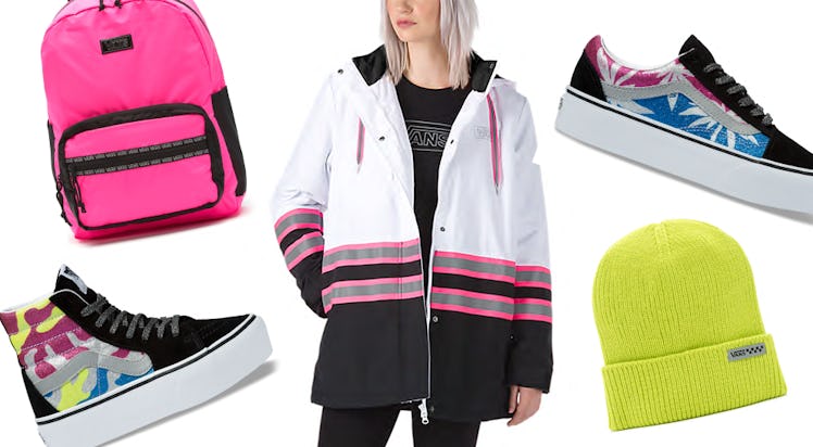 Few brands combine comfort and style as seamlessly as Vans, and the After Dark collection is a perfect Exhibit A. They've included some of their most popular sneaker styles, like the Sk8-Hi Platform 2.0s and the Old Skool Platforms, and given them new life with fun neon prints complete with shiny reflective accents that give off cool streetwear vibes. In addition to kicks, the collection features long-sleeved tees, reflective jackets, beanies, socks, and bags, so there's quite a lot to love. If you're interested in shopping the range, it's live now on the Vans website, and just to tempt you further, I've included a few pieces that are bound to sell out below. If you like 'em, now's the time to treat yourself.