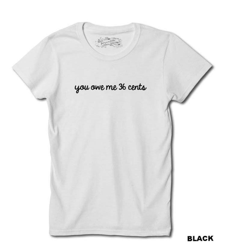 This graphic tee addresses the wage gap between men and women of different races. Select which race you wish to represent and the shirt is customized with the appropriate number. Better yet, Femininitees donates a portion of the proceeds to the National Organization for Women.