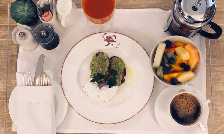 I ordered avocado toast on fresh grain bread with poached eggs on the side. I also got a bowl of seasonal fruit, pressed juice, and a freaking French press for all the coffee I desired. Believe it or not, that was my first time using a French press, and I felt classy AF. It was a wonderful way to start my "royal" day.