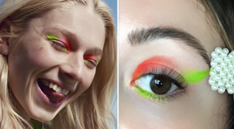 From there, you simply click "Try It," and gain access to ten glam AF filters, most of which serve major Jules and Maddy vibes. There's an all-yellow eye with a bright white cut crease, a minimalist neon orange graphic liner, and of course, a few face gems, in true Maddy fashion.