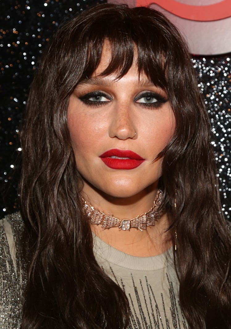 By the looks of the promo materials, the singer had plenty of fun creating the beauty beats she wore throughout. In the video above, you'll see Kesha took her signature blonde locks to a dark, chocolatey brown, rocked lavender eyeshadow, sported a bold red lip, and, of course, wore lots and lots of glitter.